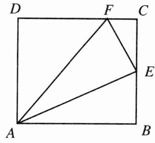 10. 如图,正方形 $ A B C D $ 的边长是 4,$ E $ 是 $ B C $ 边的中点,$ F $ 在 $ D C $ 边上,且 $ F C = \frac { 1 } { 4 } D C $,求 $ \angle A E F $ 的度数.