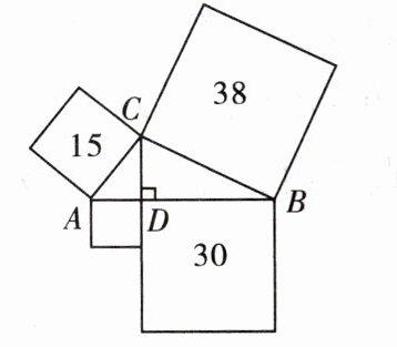 8. 如下左图,在 $\triangle ABC$ 中,$CD\perp AB$ 于点 $D$.分别以 $AC$,$BC$,$AD$,$BD$ 为边向外作正方形,得到较大的三个正方形的面积分别为 15,30,38,那么最小的正方形面积为______