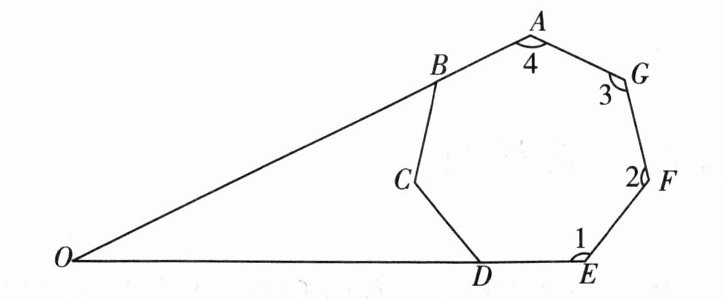 9. 如上右图,在七边形$ABCDEFG$中,$AB$,$ED$的延长线交于点$O$,$∠1$,$∠2$,$∠3$,$∠4$的外角度数和为$220^{\circ }$,则$∠BOD=$____