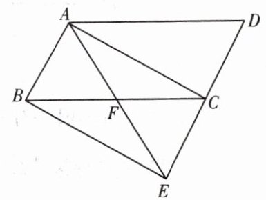 $2\sqrt{5}$(提示:先证明四边形ABEC是平行四边形,再证明AF = FE = FC = BF,从而得到四边形ABEC是矩形,由勾股定理,得AC = $\sqrt{BC^{2} - AB^{2}} = \sqrt{5}$,