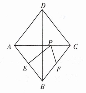 4. 如上右图,在菱形 ABCD 中,对角线$AC=6,BD=8$,点 E,F 分别是边 AB,BC 的中点,点 P 在 AC 上运动,在运动过程中,$PE+PF$的最小值是(