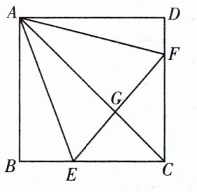 5. 如图,在正方形 ABCD 中,点 E,F 分别在 BC,CD 上,$△AEF$是等边三角形,连接 AC 交 EF 于点 G,下列结论:①$BE=DF$;②$∠DAF=15^{\circ }$;③AC 垂直平分 EF;④$BE+DF=EF$;⑤$S_{△CEF}=2S_{△ABE}$.其中正确的有(