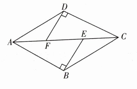 2. 如下左图,在菱形 ABCD 中,$∠BAD=60^{\circ },BE⊥AB,DF⊥CD$,垂足分别为点 B,D.若$AB=6cm$,则$EF=(