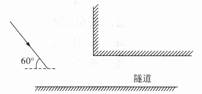 4.如图所示,小明利用一块平面镜使此时的太阳光水平射入隧道内,请你通过作图画出平面镜,并在图中标出反射角的度数。