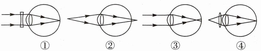7.12~18岁是青少年近视的高发期,主要原因如下:(1)长时间用眼姿势不正确或不注意休息;(2)长时间使用电脑、手机等电子设备。下列四幅图中表示近视眼及其矫正的是(