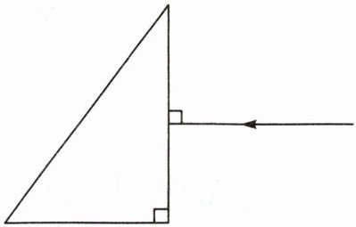 5.如图所示的是一块横截面为三角形的玻璃砖,一束光垂直于三角形的一条边从空气射人,请在图中画出这束光穿过玻璃砖的大致光路。