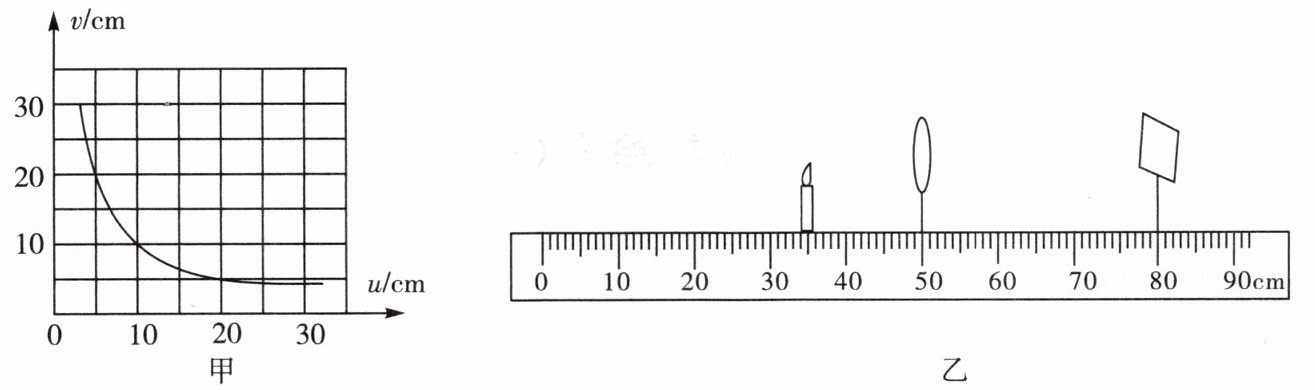 。(2)通过探究,记录并绘制了物距u与像距v之间的关系图像,如图甲所示,则该凸透镜的焦距是
