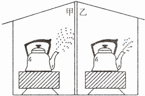 (2)如图所示,甲、乙两个房间里相同的电炉上,相同的两壶水都已烧开,观察发现壶嘴上方的“白雾”不一样多。由此现象,你能否判断出哪个房间的气温较高。