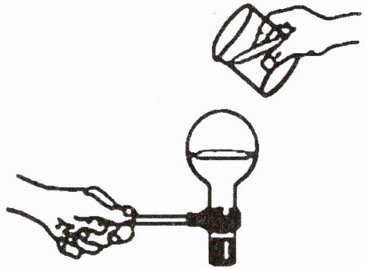 3.水沸腾后把烧瓶从火焰上拿开,水会停止沸腾。此时迅速塞上瓶塞,把烧瓶倒置并向瓶底浇冷水,如图所示,你会发现烧瓶内的水中出现了大量的