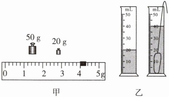 (3) 小化石放入量筒前后的情况如图乙所示(忽略细线的体积),则小化石的密度是