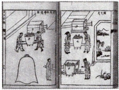 7. 我国古代科技著作《天工开物》里记载了铸造“万钧钟”和“鼎”的方法,先后用泥土制作“模骨”,“干燥之后以牛油、黄蜡附其上数寸”,在油蜡上刻上各种图案(如图所示),然后在油蜡的外面用泥土制成外壳。干燥之后,“外施火力炙化其中油蜡”,油蜡流出形成空腔,在空腔中倒入铜液,待铜液冷却后,“钟鼎成矣”。下列说法正确的是 (