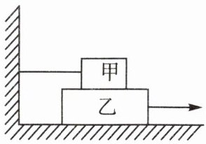 4. 在光滑水平面上叠放着甲、乙两物体,如图所示,甲物体用细线拴在左边竖直墙上,现用力把乙物体从右端匀速拉出来,所用力$F = 15N$,则甲、乙两物体受到的摩擦力是 (