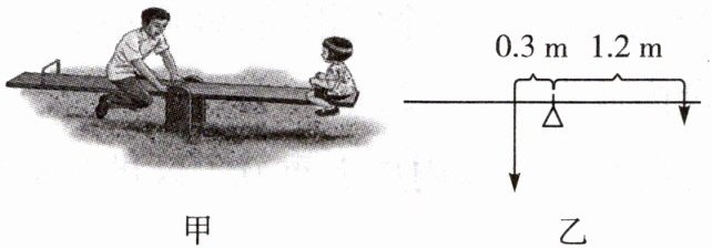 3.如图甲所示,爸爸和小红坐在跷跷板的两侧,在水平位置保持平衡。将其简化成如图乙所示的杠杆,不计杠杆自重的影响,若小红的质量为15kg,则爸爸的质量为