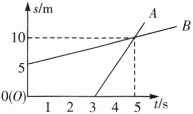 5.沿同一条直线向东运动的物体$A$、$B$,它们相对同一参考点$O$运动的距离$s$随时间$t$变化的图像如图所示。下列说法正确的是 (