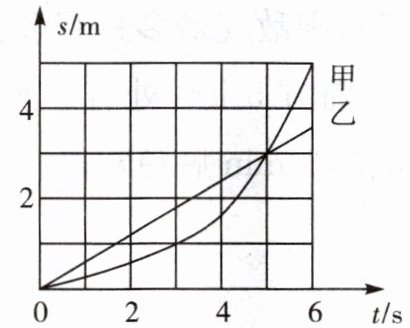 6.甲、乙两物体运动时,路程与时间关系的$s - t$图像如图所示,其中甲为曲线,乙为直线,在$t = 5s$时两线相交,则由图像可知 (