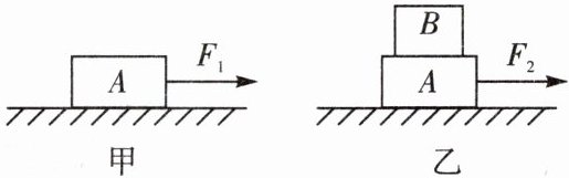 ;(2)如图乙所示,将一个重力为10N的B物体放在A物体上,A与B间的动摩擦因数$\mu =0.3$,用$F_{2}$水平匀速拉动A物体,使A和B一起匀速向右运动,求此时A所受拉力$F_{2}$的大小为