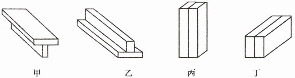 3. 完全相同的8块砖,每块砖的长、宽、高的比均为$4:2:1$。小明同学在水平桌面上把它们摆放成了如图甲、乙、丙、丁所示的四种形式,其中对桌面压强相等的是