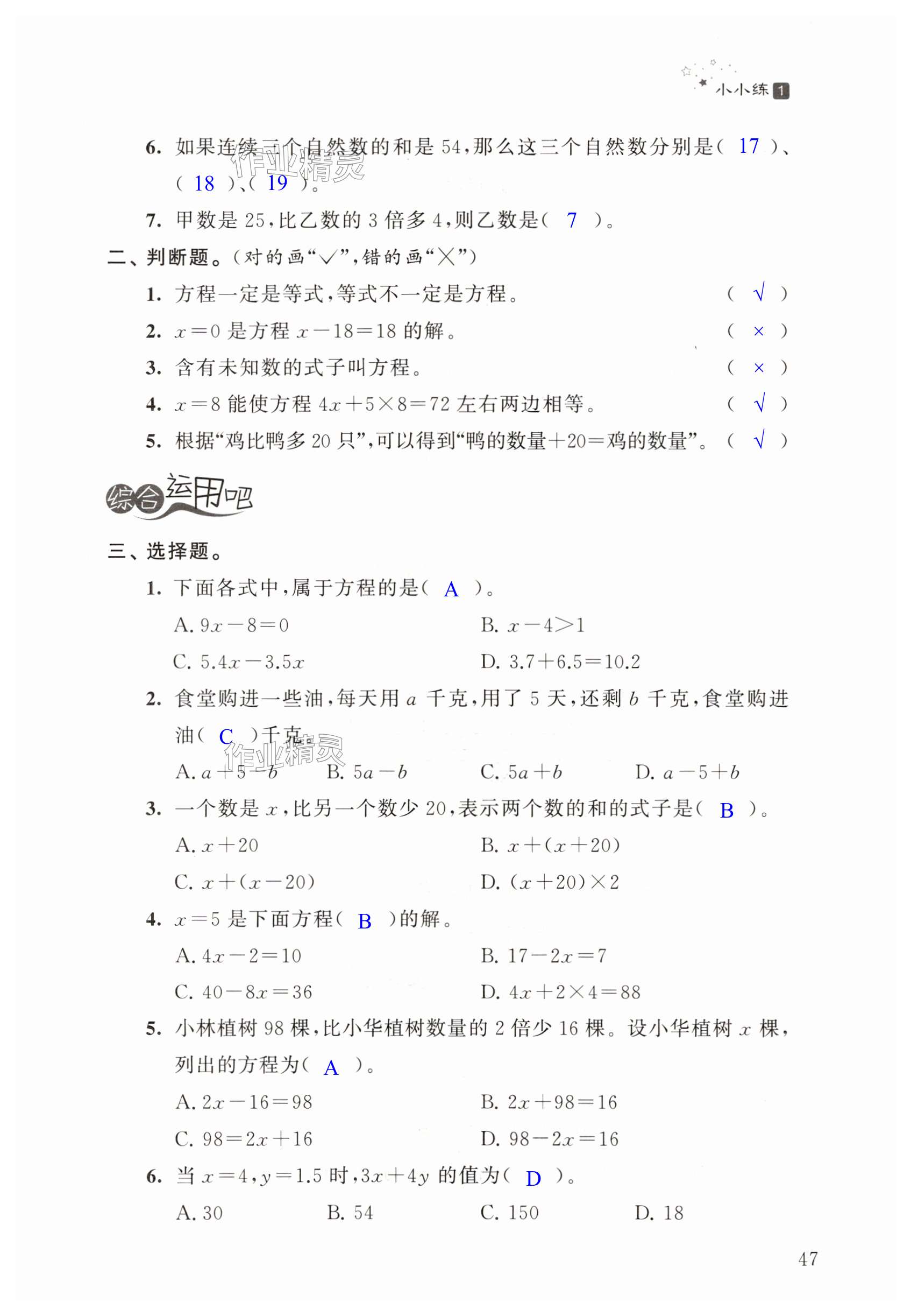 注:目前有些书本章节名称可能整理的还不是很完善,但都是按照顺序排列的,请同学们按照顺序仔细查找。练习册 2025年欢乐岛暑假小小练五年级合订本 答案主要是用来给同学们做完题方便对答案用的,请勿直接抄袭。