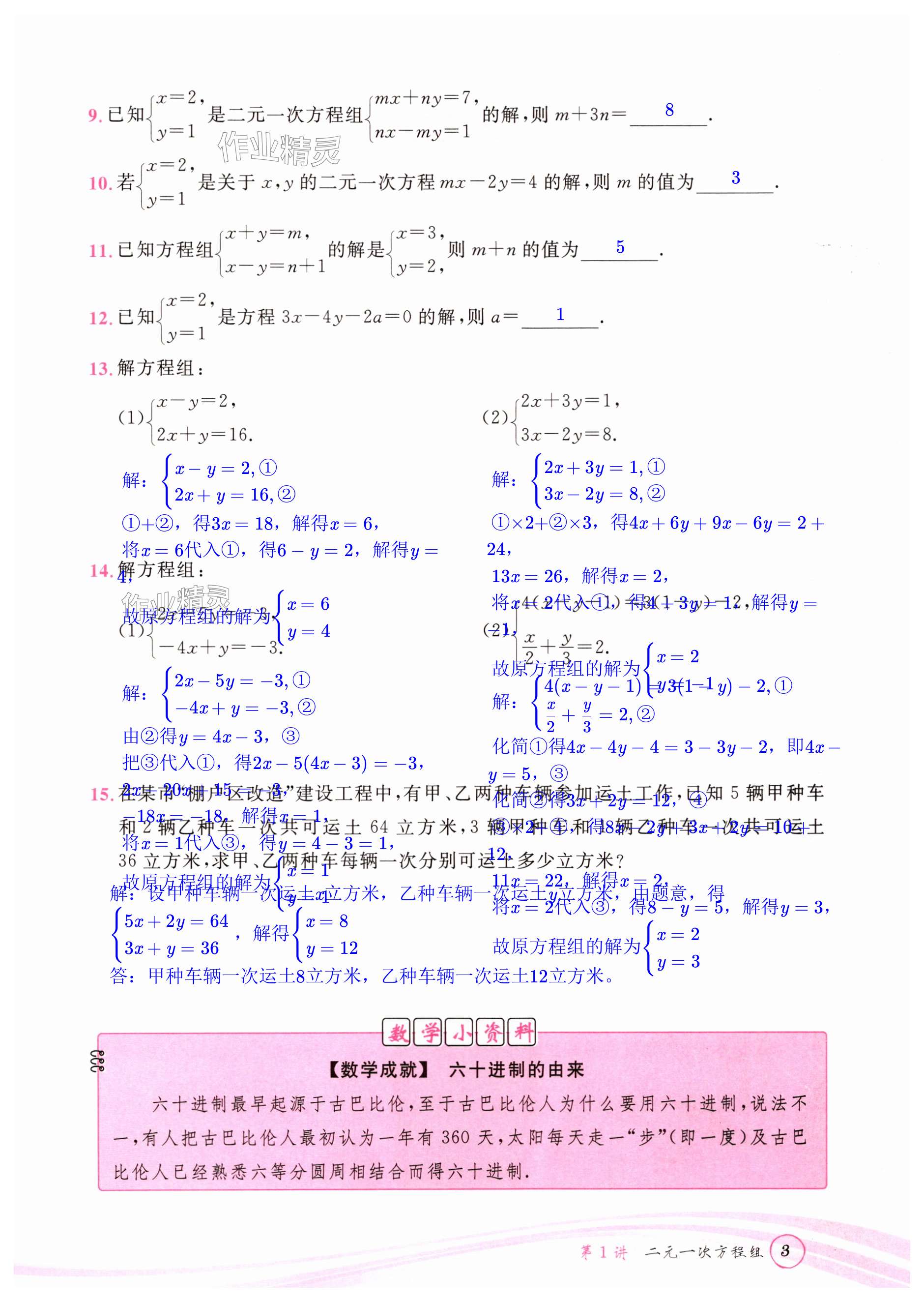 注:目前有些书本章节名称可能整理的还不是很完善,但都是按照顺序排列的,请同学们按照顺序仔细查找。练习册 2025年暑期衔接教材七升八年级数学浙教版 答案主要是用来给同学们做完题方便对答案用的,请勿直接抄袭。