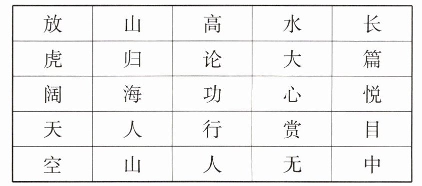 放虎归山、山高水长、长篇大论、论功行赏、赏心悦目、目中无人、人山人海、海阔天空。