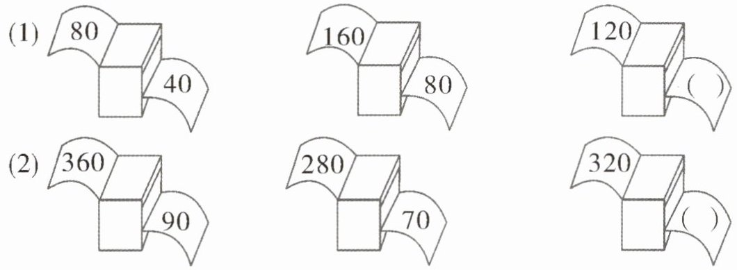 观察前两组数$80$与$40$,$160$与$80$,可发现规律:$\boldsymbol{80\div2 = 40}$,$\boldsymbol{160\div2 = 80}$,即左边的数是右边数的$2$倍。