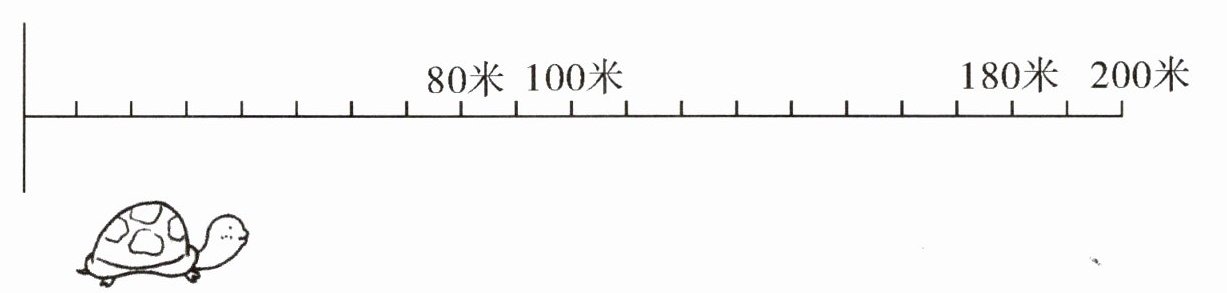 【解析】:乌龟先跑了$18$分钟,速度是每分钟$10$米,根据路程$=$速度$\times$时间,先跑的路程为$10\times18 = 180$米。跑道总长$200$米,所以乌龟剩下的路程为$200 - 180=20$米。乌龟跑剩下路程所需时间为$20\div10 = 2$分钟。兔子速度是每分钟$40$米,在这$2$分钟内跑的路程为$40\times2 = 80$米。兔子总共跑$80$米,离终点还有$200 - 80 = 120$米。