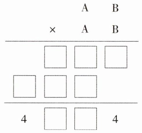 2.在下面的竖式中,当A和B各代表多少时,乘法竖式才能成立?