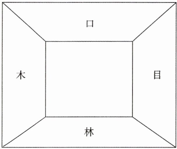 6. 在下图的中间填上一个字,使上、下、左、右分别组成一个字,并在答题线上写出这四个字。
