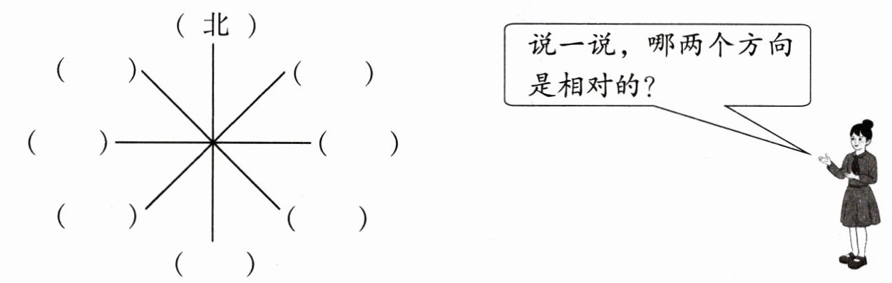 (西北)(东北)(西)(东)(西南)(东南)(南);北与南相对,西与东相对,西北与东南相对,东北与西南相对。