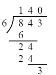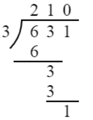 631÷3=210.....1 340÷2=170 704÷5=140......4 843÷6=140......3