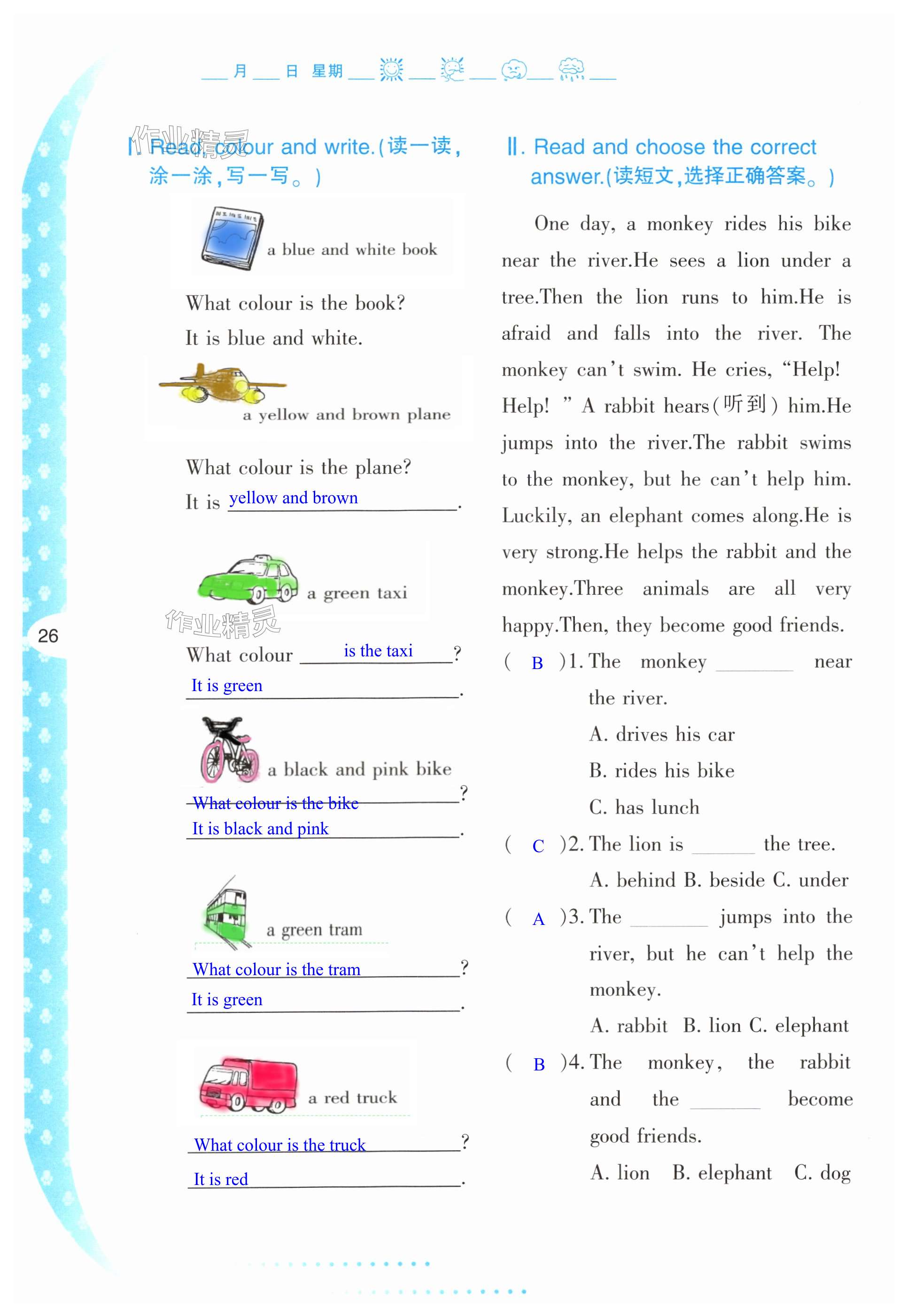 注:目前有些书本章节名称可能整理的还不是很完善,但都是按照顺序排列的,请同学们按照顺序仔细查找。练习册 2025年暑假作业陕西人民教育出版社四年级英语E冀教版 答案主要是用来给同学们做完题方便对答案用的,请勿直接抄袭。