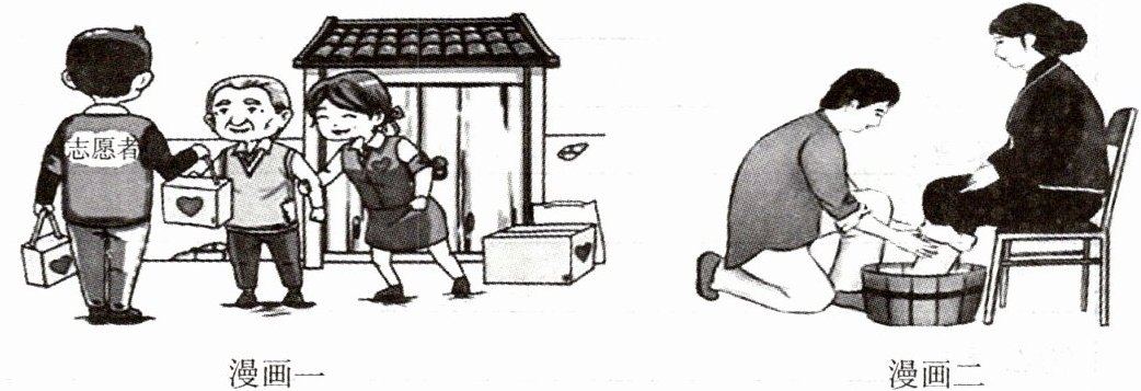 (1)漫画一:扶危济困。漫画二:孝老爱亲。