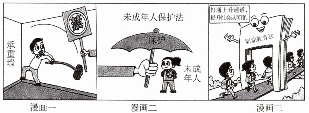 5. 小明同学在学习法律保障生活相关内容时,收集到了以下三幅漫画。他感叹道:“法律保障生活,没有法律就没有我们的美好生活。”