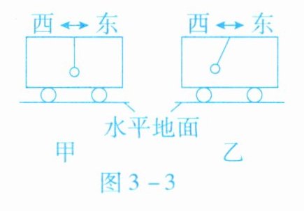 8. 一个金属球用细绳挂在车厢内, 并相对于车静止, 位置如图 3 - 3 甲所示。下列能使金属球突然从图 3 - 3 甲所示位置变成图 3 - 3 乙所示位置的是 (
