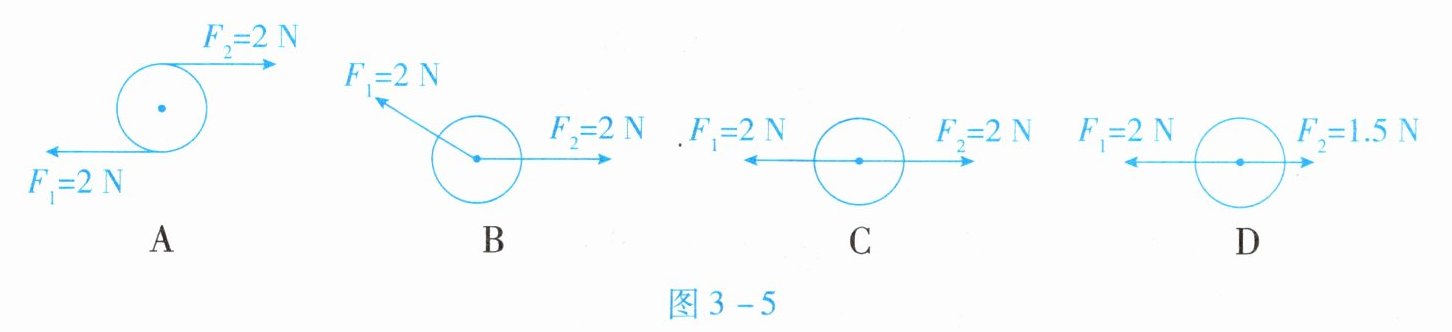 11. 如图 3 - 5 所示, $ F_1 $ 和 $ F_2 $ 是物体所受的两个力, 这两个力属于二力平衡的是 (