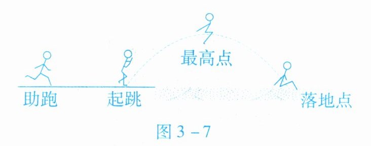 13. 图 3 - 7 是某运动员跳远过程的示意图, 忽略空气阻力, 下列分析正确的是 (