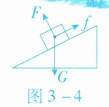 9. 如图 3 - 4 所示, 重力 $ G = 20 \, \text{N} $ 的木块静止在斜面上, 受到斜面对它的支持力 $ F $ 与摩擦力 $ f $ 的作用。根据所学的知识判断, 下列说法正确的是 (