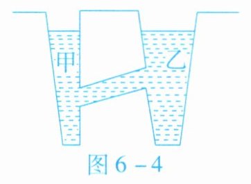 10. 如图6-4所示,公路两侧的甲、乙两条水渠由路面下的倾斜涵洞相连,两渠水面相平。下列关于涵洞中的水流方向的说法中,正确的是(