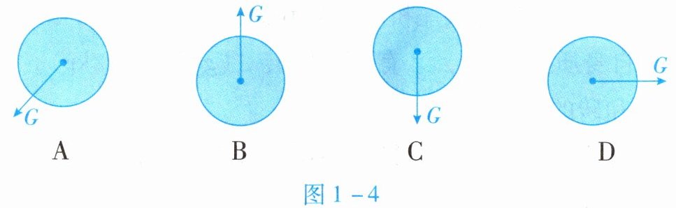 15. 如图1-4所示,小球所受重力的示意图中,正确的是(
