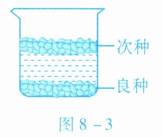 8. 如图8-3所示,盐水选种是我国农民常采用的选种方法,但盐水浓度的把握是关键,如果盐水的浓度太低,则可能(