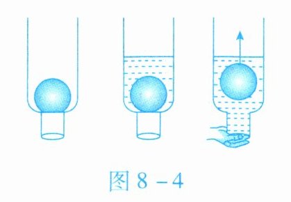 9. 小童同学取一只瓶口直径略小于乒乓球直径的透明塑料瓶,将塑料瓶底切去后,倒立放置,将乒乓球放入瓶中,且保持瓶口朝下,如图8-4所示,往塑料瓶里注水,会发现水从瓶口流出,乒乓球静止不动,用手堵住瓶口,乒乓球向上运动。此实验可用于(