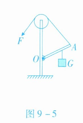 12. 画出图 9 - 5 中轻质杠杆 OA 的动力臂$L_{1}和阻力臂L_{2}$。