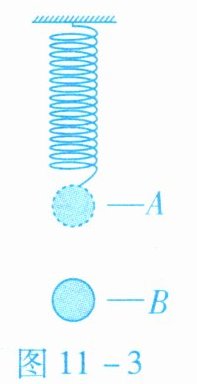 14. 如图 11 - 3 所示, 在弹簧下端悬挂一个实心小球, 用手托住小球, 小球静止在 A 点, 此时弹簧处于自然长度。释放小球, 小球向下运动到最低点 B (不超过弹簧的弹性限度), 则小球从 A 点运动到 B 点的过程中 (