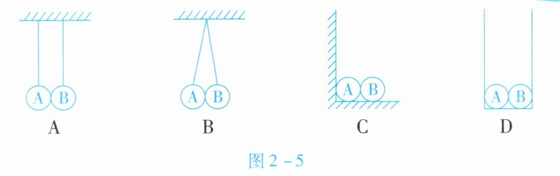 13. 如图2-5所示,A、B两球相互间一定有弹力作用的是 (