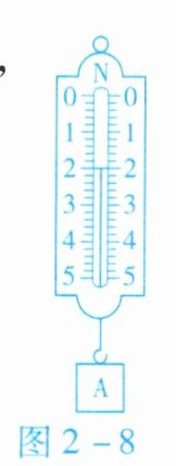 16. 如图2-8所示,弹簧测力计和物体A保持静止状态,$ g $取10N/kg。