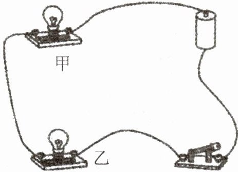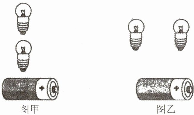 用铅笔线代替导线,把下面两个图中的电池和灯泡连起来,并使图甲中的灯泡比图乙中的灯泡更亮。