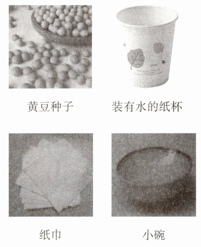 (2)把黄豆种子放在湿润的纸巾上,并将小碗放置于温暖的环境中。