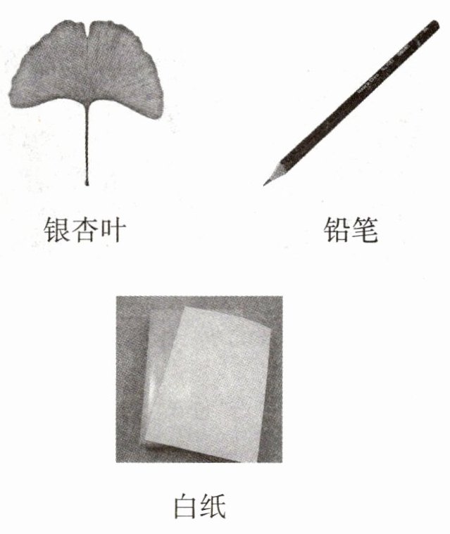 (2) 把白纸盖在叶子上面,用铅笔在纸面上轻轻涂画,可以看到叶子的形状及叶脉走向逐渐显现。