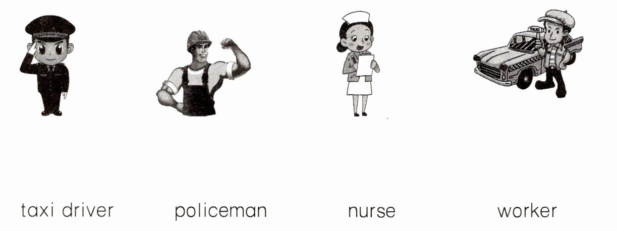 第一张图片连policeman,第二张图片连worker,第三张图片连nurse,第四张图片连taxi driver