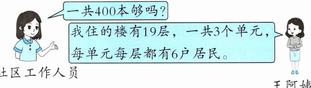 2. 安全工作重于泰山,为提高安全意识,社区要给每户居民发放一本安全宣传手册。王阿姨是社区服务志愿者,负责把安全宣传手册发放到同楼的每一户。